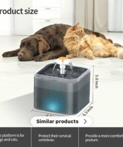 Constant fresh water flowing for your pet with a quiet pump and built-in filter. Holds 1 liter and lights up with a soft blue glow. Easy to clean and perfect for pets who love fresh water all day.